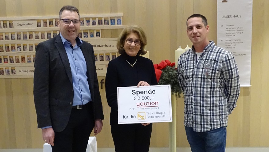 Die IKB-Gewerkschaft „younion Tirol Hauptgruppe II“ hat im Rahmen einer Adventfeier 2.500 Euro für schwerkranke Menschen gesammelt. Wir danken allen, die etwas zu diesem tollen Ergebnis beigetragen haben!