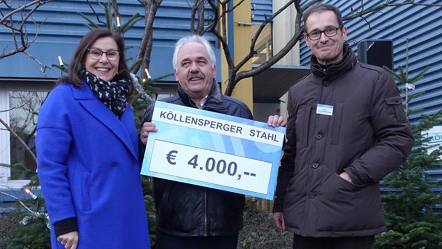 Dr. Elisabeth Zanon, Herbert Forster und Geschäftsführer Mag. Rainer Köllensperger freuen sich über die großzügige Weihnachtsspende für das Hospizhaus Tirol. Köllensperger Stahlhandel stiftet im geplanten Hospizhaus in Hall in Tirol „ein Fenster in einem Patientenzimmer“ im Wert von 4.000 Euro. Vielen Dank für diese so wichtige Hilfe!