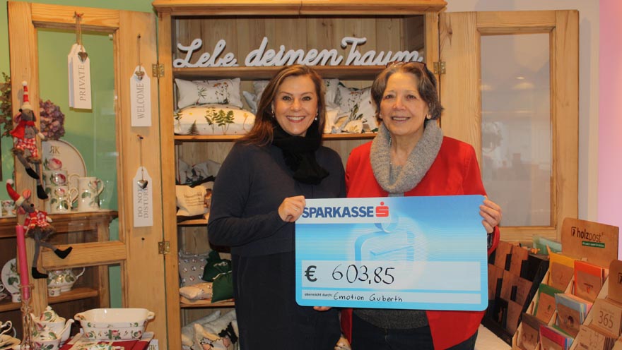 Dr. Elisabeth Zanon (Vorsitzende der Tiroler Hospiz-Gemeinschaft) und Marie-Louise Guberth freuen sich über die großzügige Unterstützung der Hospizbewegung in Tirol. Maria-Louise Guberth sammelt in Ihrem Geschäft Spenden für die Tiroler Hospiz-Gemeinschaft. Vielen Dank dafür!