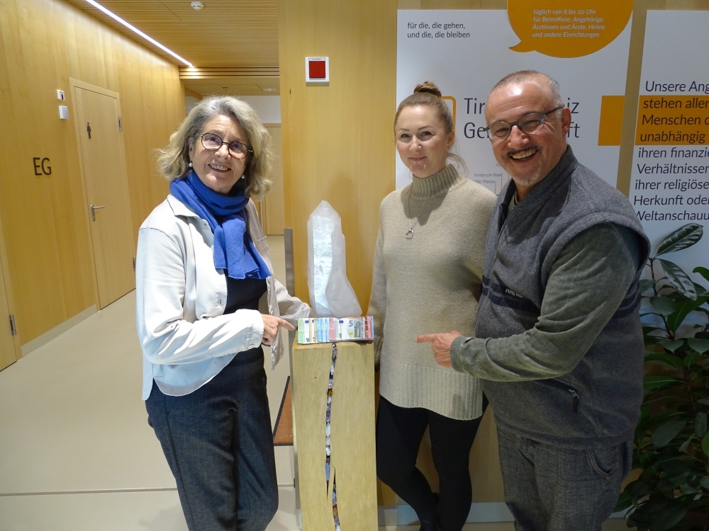 Klaus Ploner, Inhaber des Geschäftes „Obst und Gemüse Ploner“ in Hall in Tirol, ließ die Gäste seiner 60-Jahr-Feier Roulette spielen. Den Reinerlös von 1040 Euro spendete er der Tiroler Hospiz-Gemeinschaft.