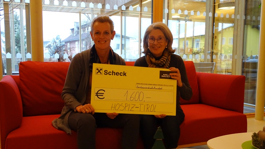 Marina Baldauf (Vorsitzende) und Sonja Dag freuen sich über die großzügige Unterstützung für schwer kranke Menschen und ihre Angehörigen. Sonja Dag spendet den Reinerlös ihres Verkaufstandes in der Cyta in der Höhe von 1.600 Euro der Tiroler Hospiz-Gemeinschaft. Wir bedanken uns bei ihr für diese tolle Initiative, bei der Cyta für die kostenlose Verkaufsfläche und bei allen die ihren Verkaufstand besucht haben.